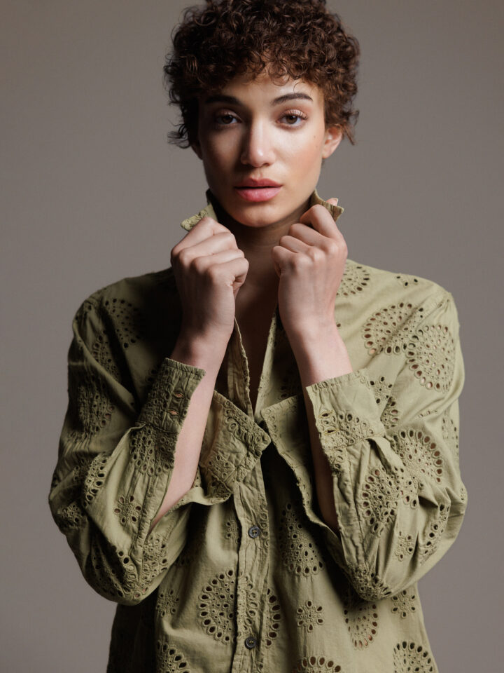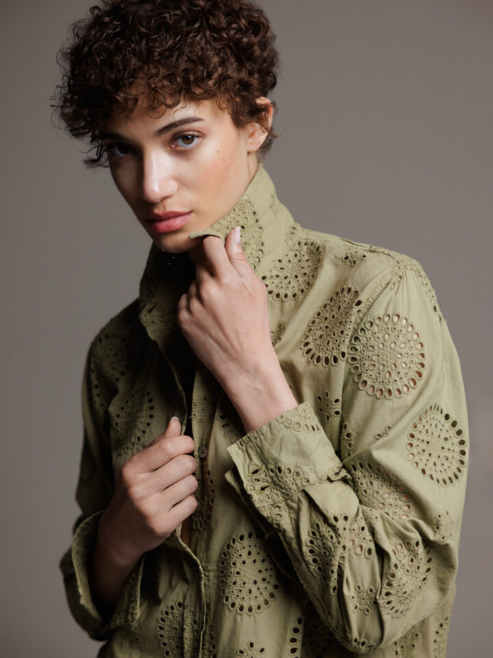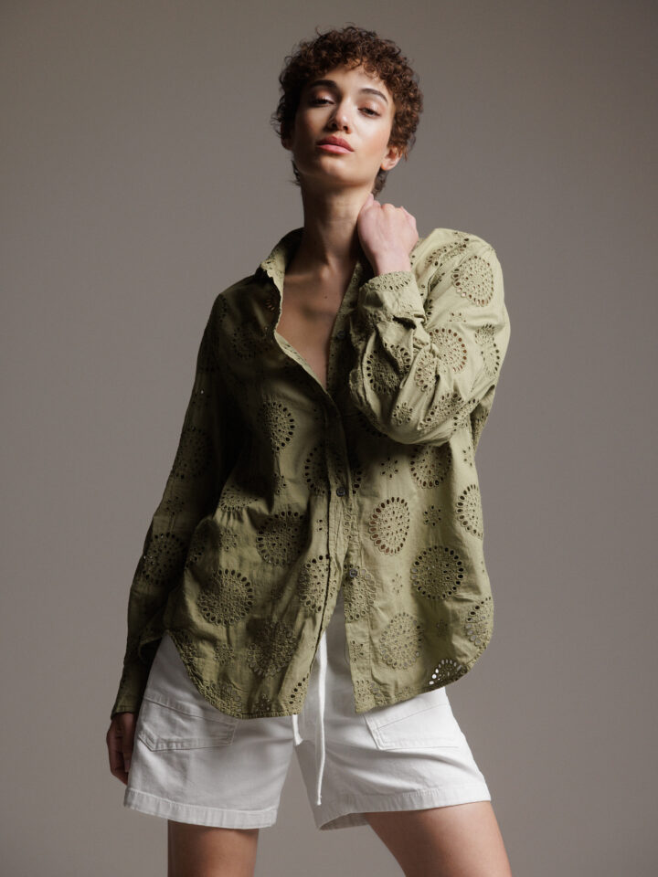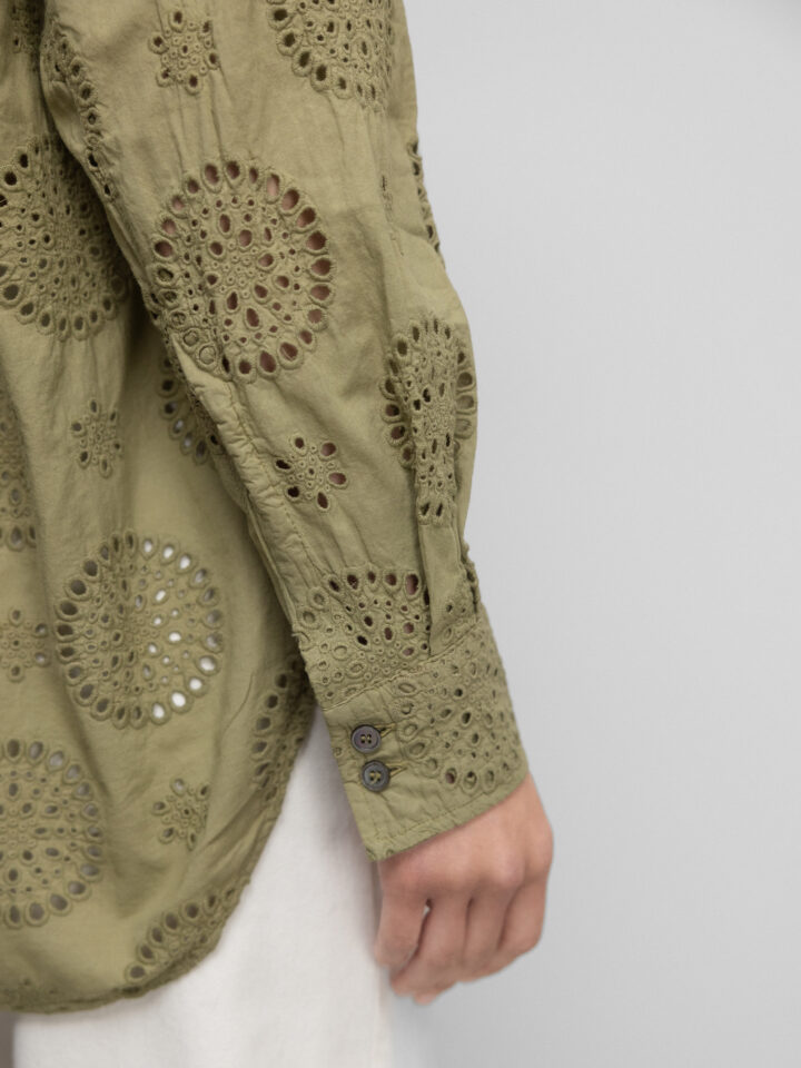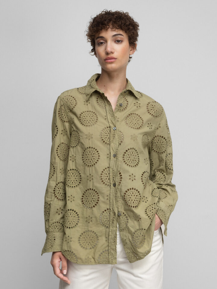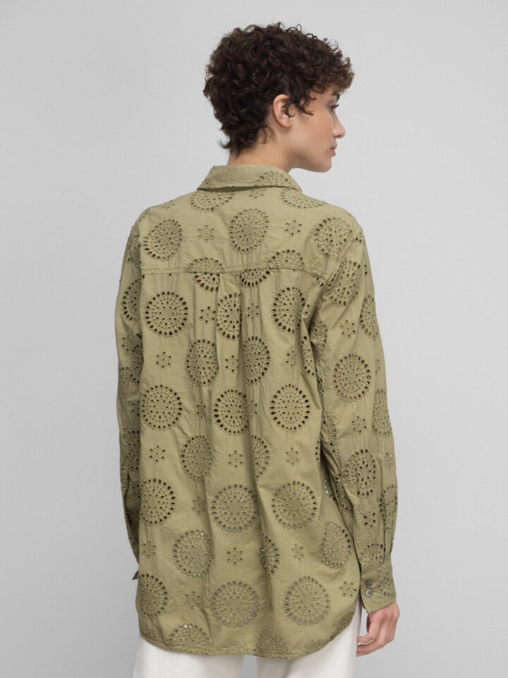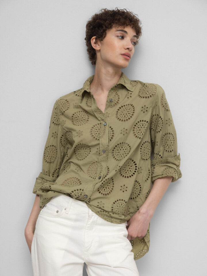 Baumwollbluse mit Lochmuster von CALIBAN AU1 OLIV | PZP/KW1
