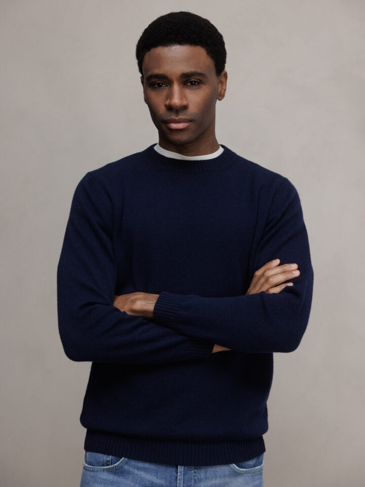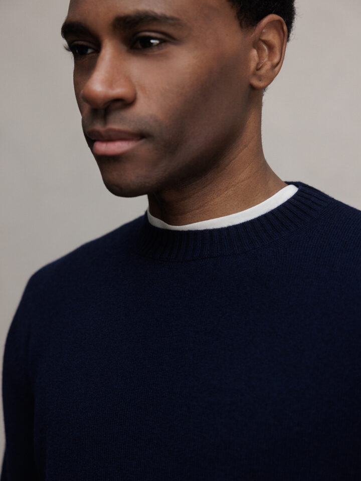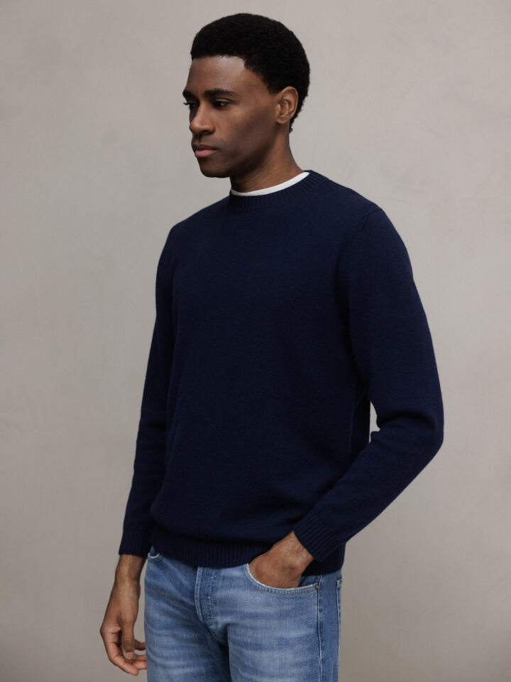 Feinstrickpullover aus Wolle von WLNS U1 7692 NAVY  |  U022301 WU