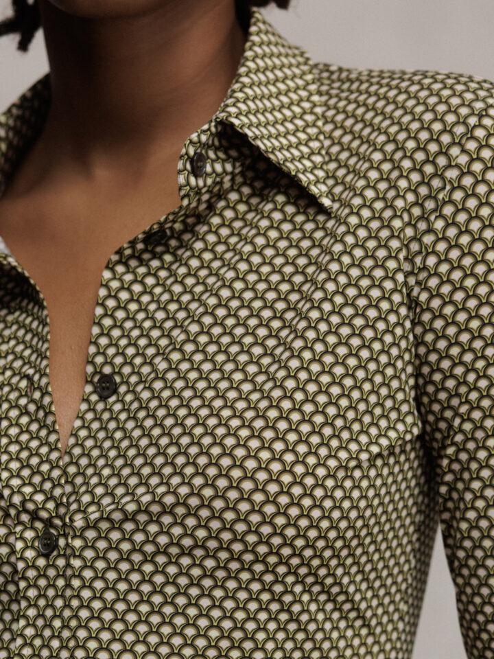 Gemusterte Bluse von CALIBAN FU1 OLIV GEMUSTERT | PL4/YW6
