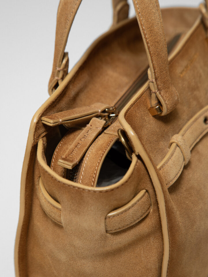Handtasche aus Veloursleder von OFFICINE CREATIVE ALCE | SADDLE 026/LIGHT CASHEMIRE