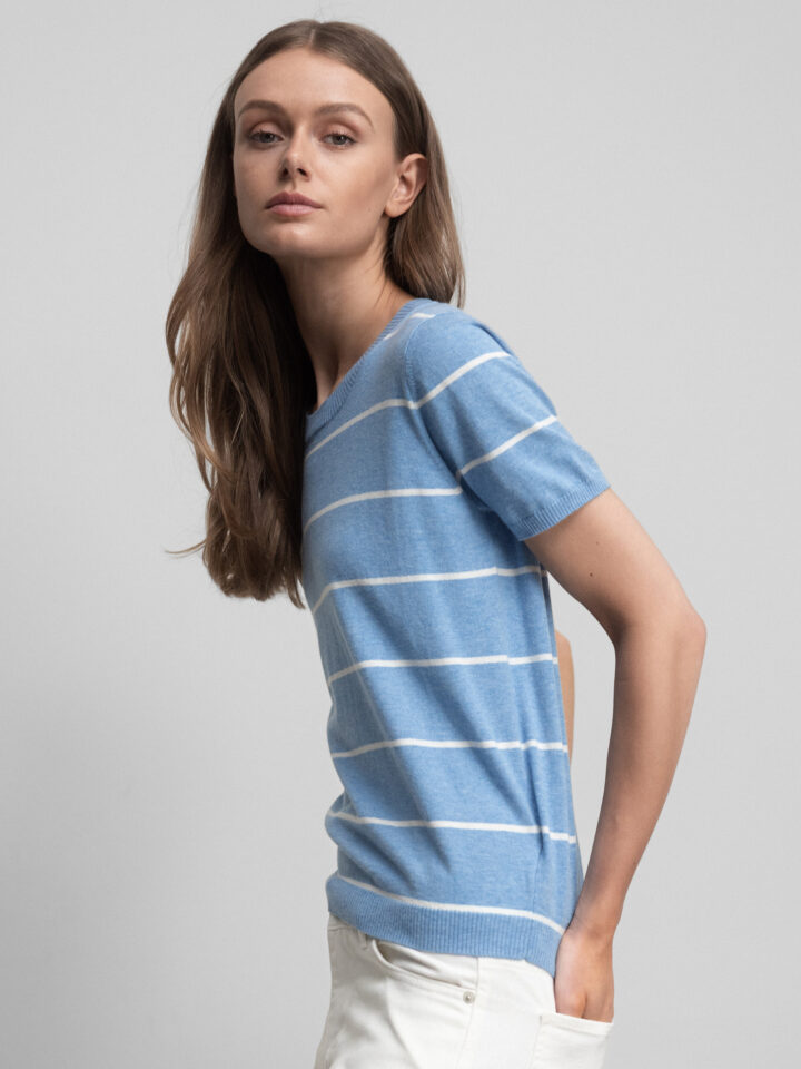 Kurzarm- Feinstrickpullover aus Baumwolle von BELLA DAHL SAILOR STRIPE | B4768/K62/304