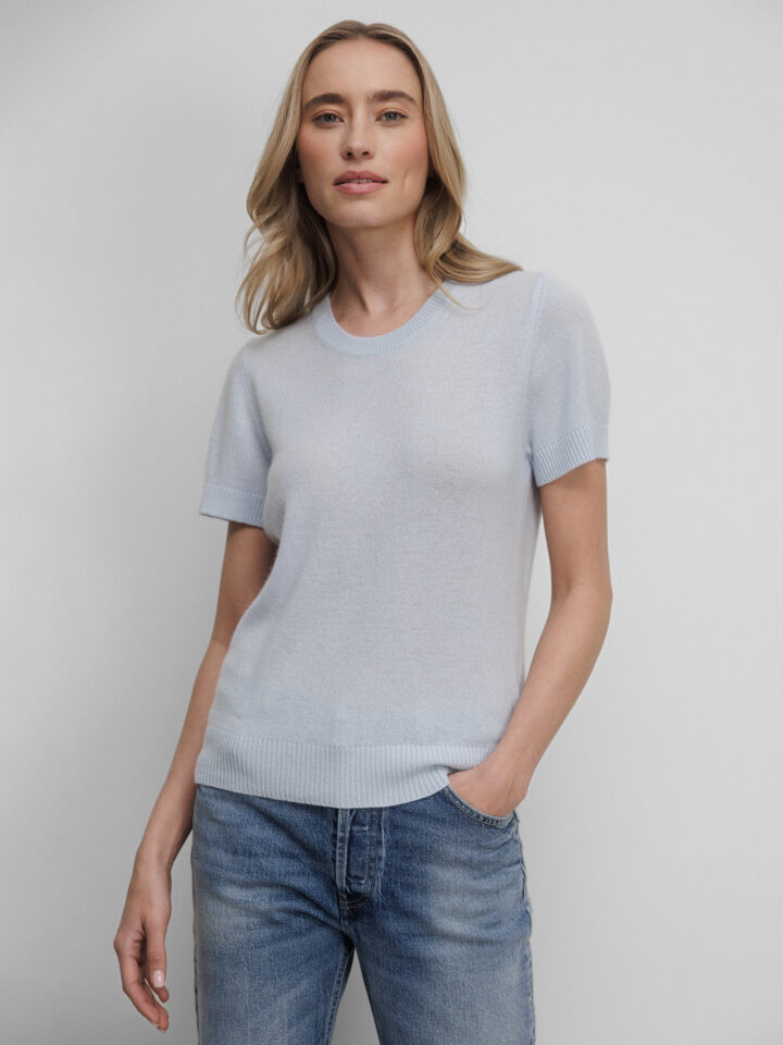Kurzarm- Feinstrickpullover aus Cashmere von ALLUDE 10 HELLBLAU | 26211171