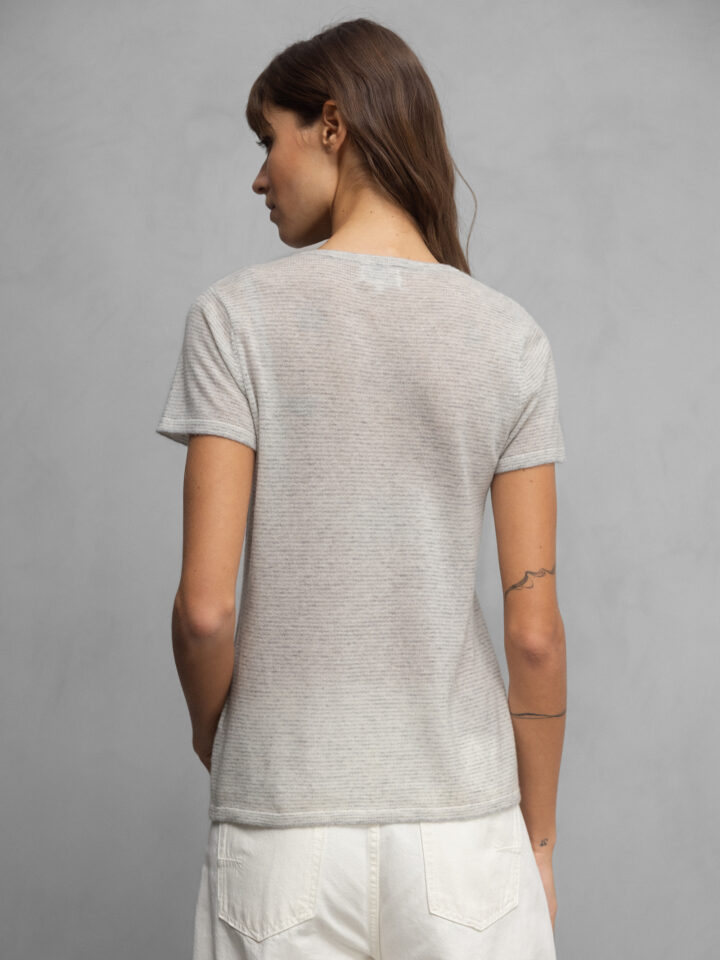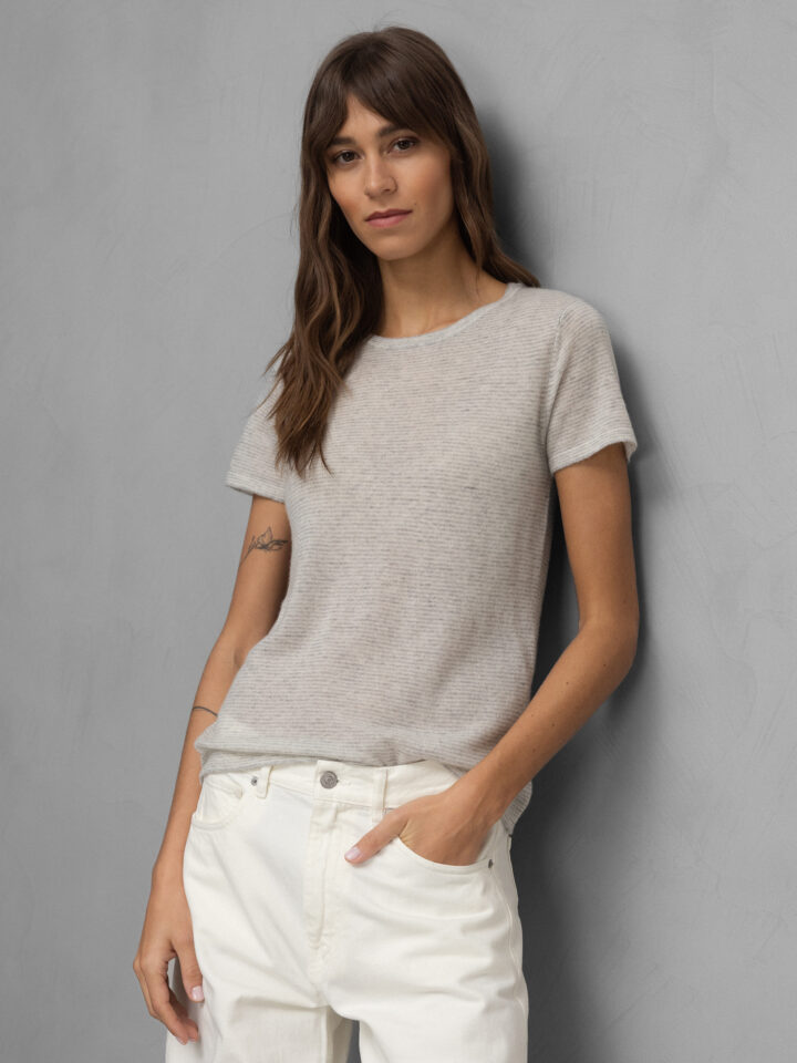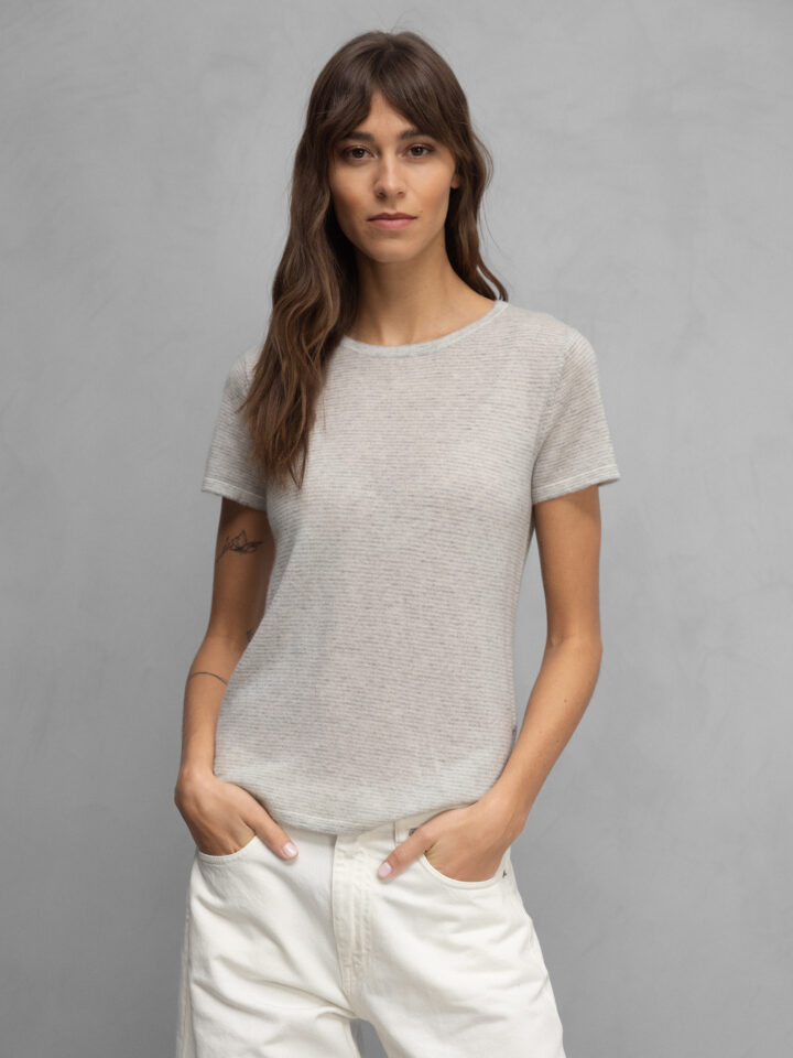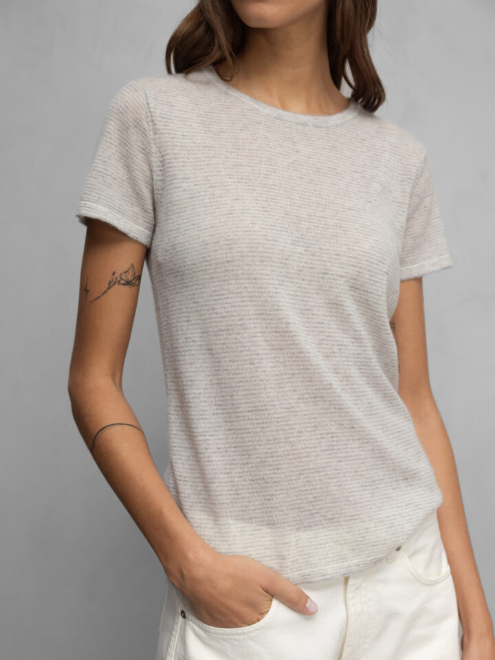 Kurzarm- Feinstrickpullover aus Cashmere von UNIVERSEL 12 OFFWHITE/GREY  |  K02/50