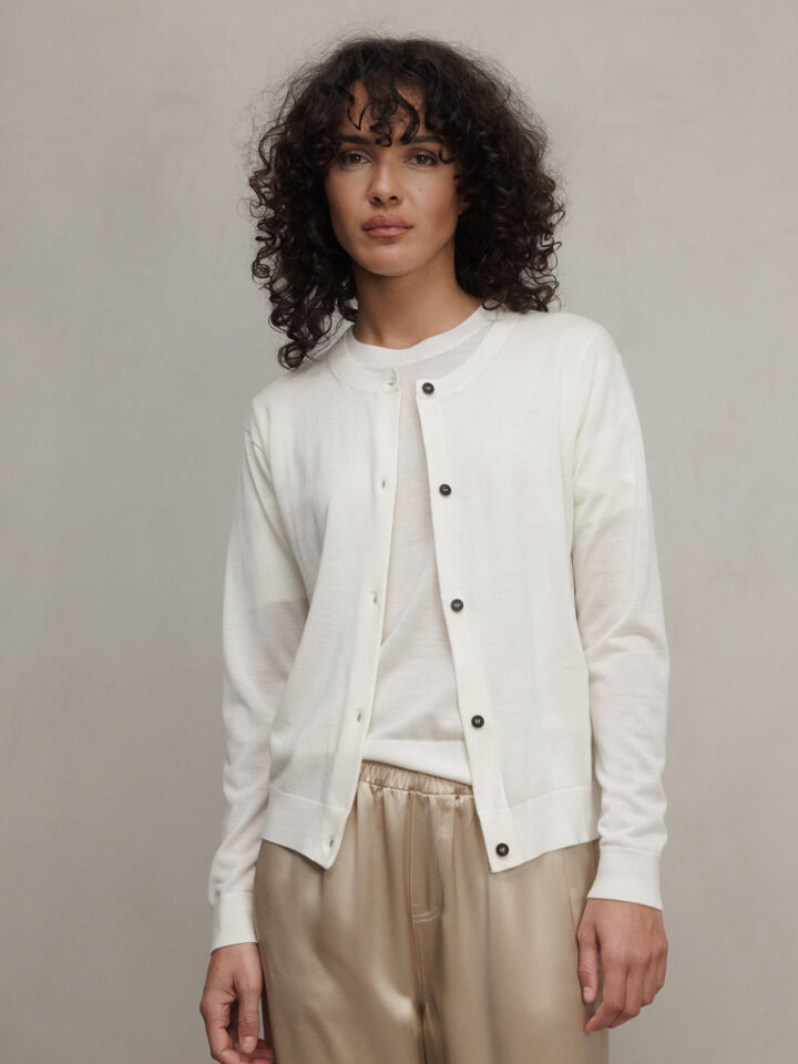 Kurzarm- Feinstrickpullover aus Merinowolle von LIS LAREIDA 110 WEISS | TAMI 203/255