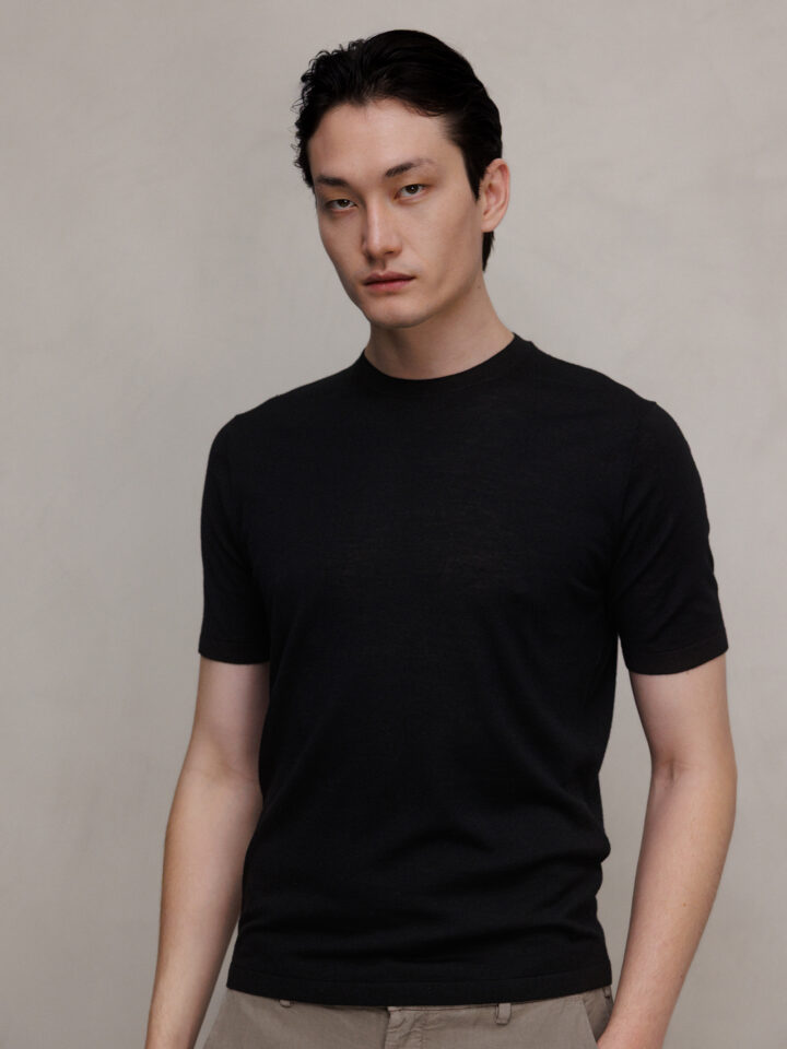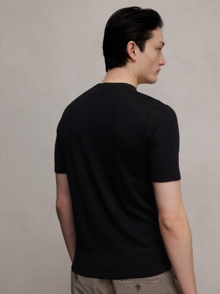 Kurzarm- Feinstrickpullover aus Wolle von KIEFERMANN 2 BLACK  |  GEORGS 48026