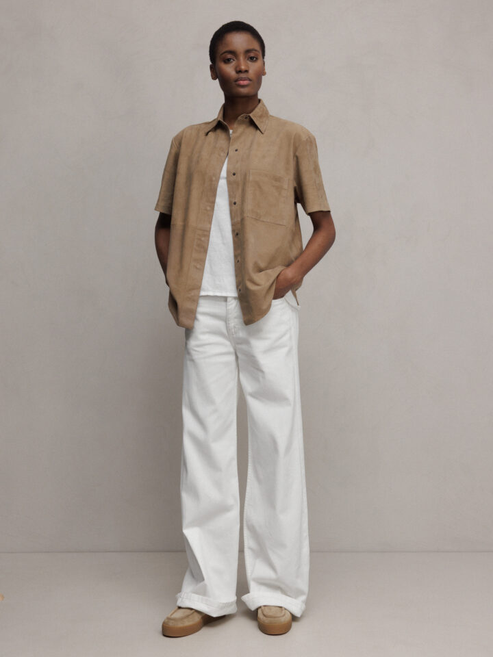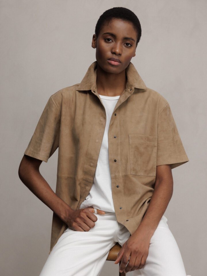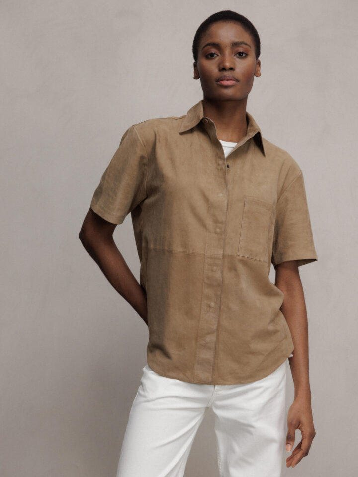 Kurzarm- Hemd aus Veloursleder von DANIELS 1641 LT TAUPE | AGATE/GOAT SUEDE