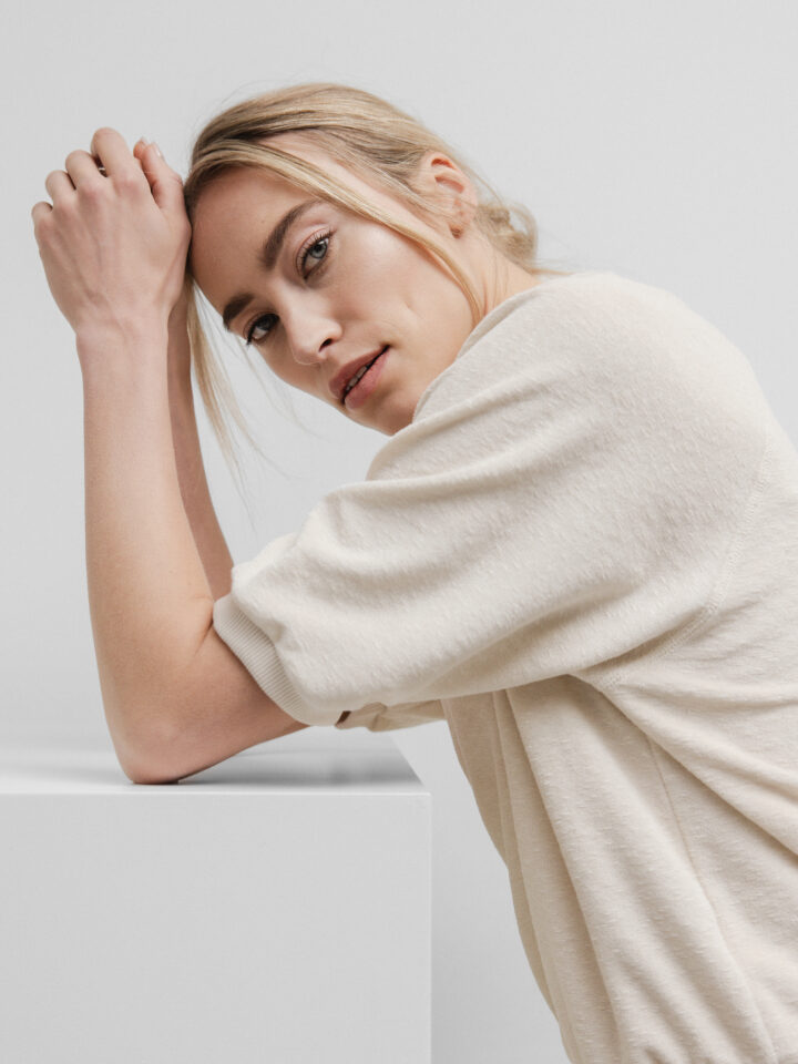 Kurzarm- Pullover aus Baumwolle von BY-BAR AMSTERDAM 232 ALMOND  |  NEVA SLUB TOP-BY