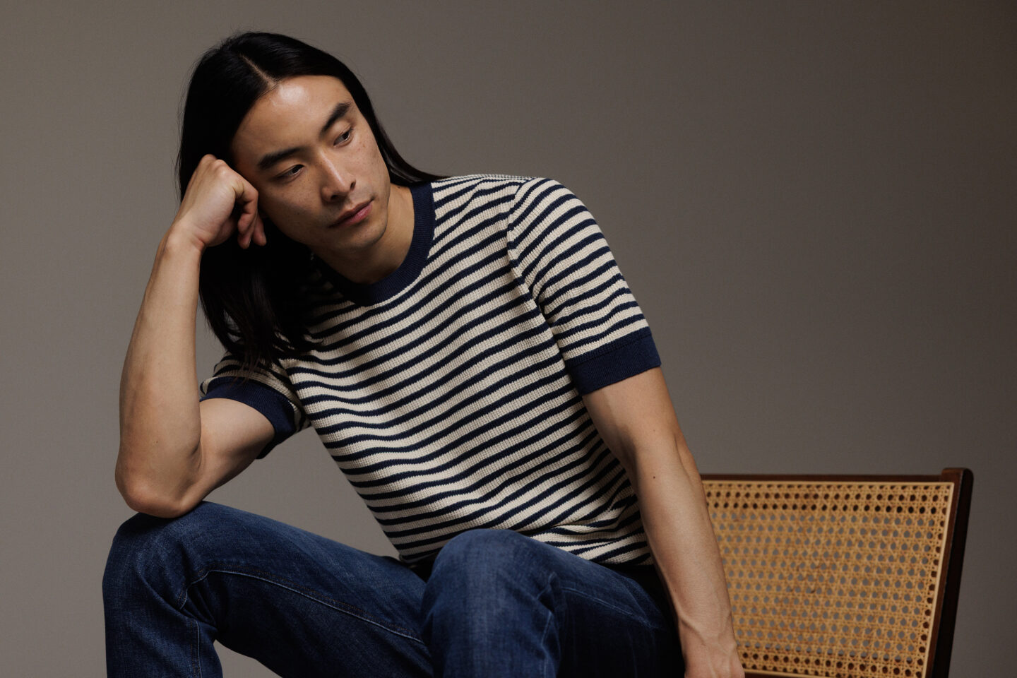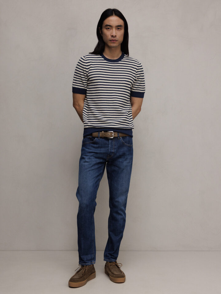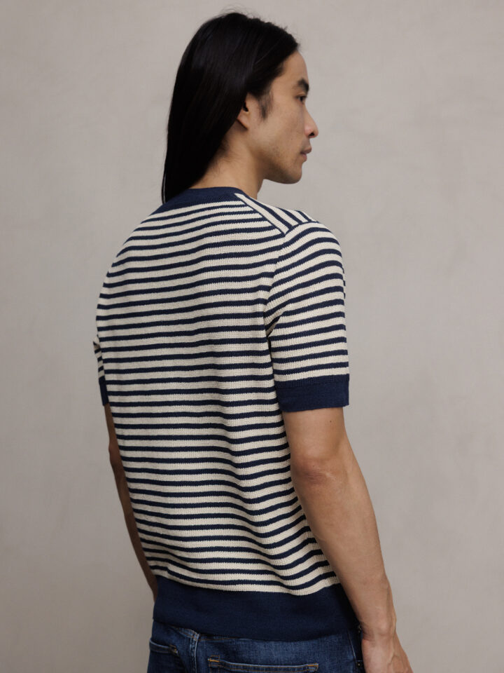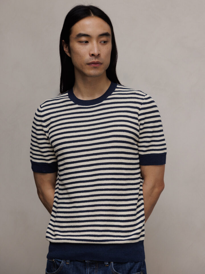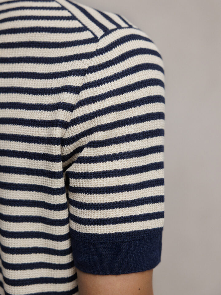 Kurzarm- Pullover aus Leinen von GRAN SASSO 598 NAVY/OFF WHITE | 57193/18669
