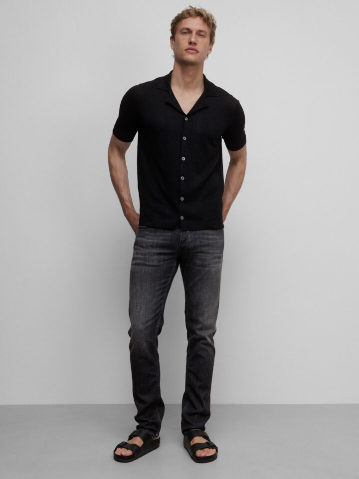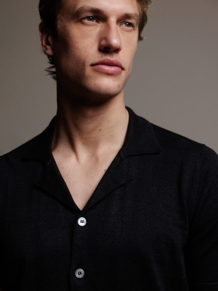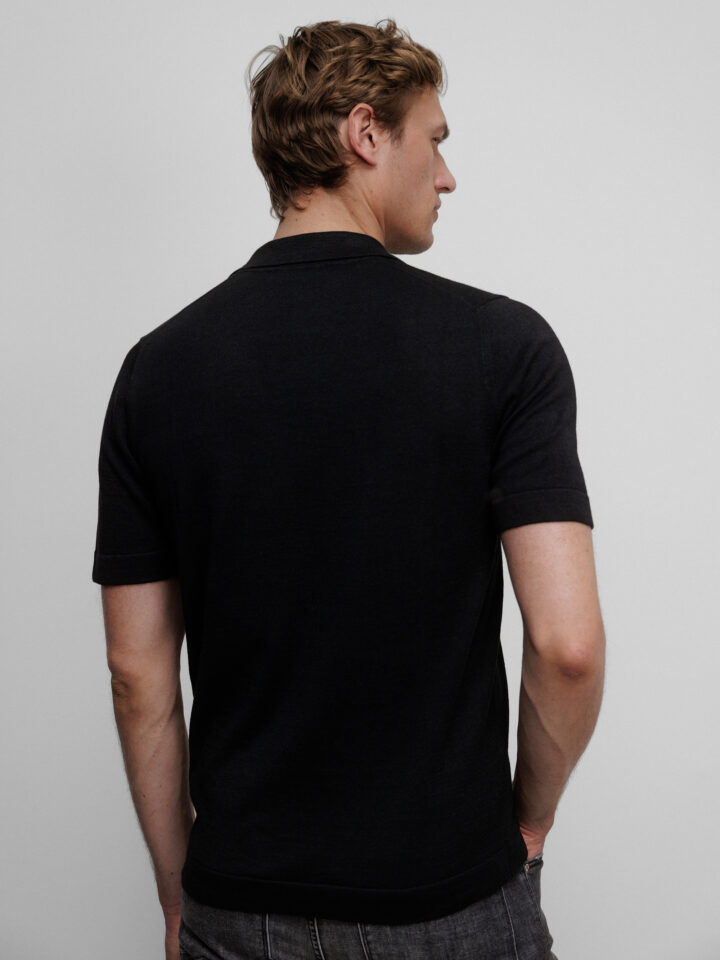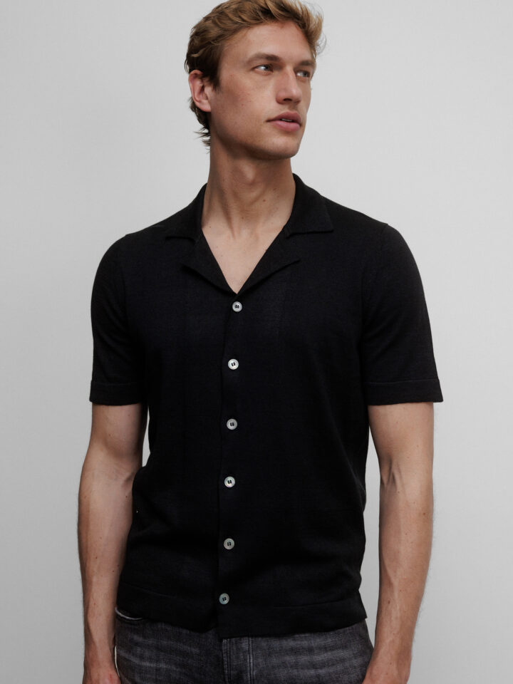 Kurzarm- Strickhemd aus Leinen von GRAN SASSO 099 NERO | 57184/18637