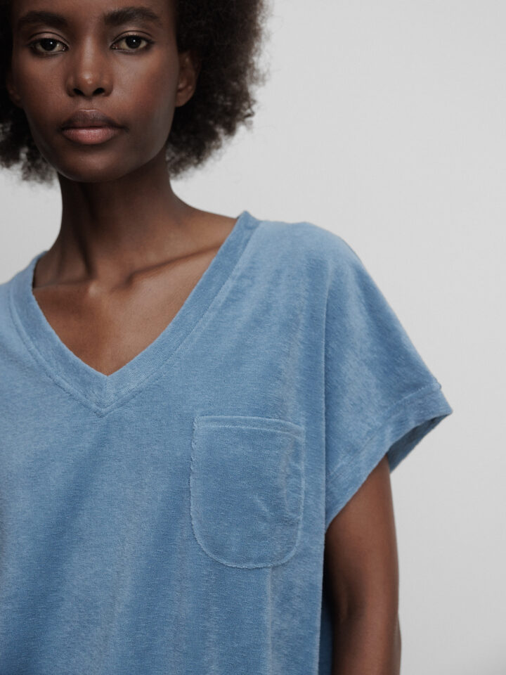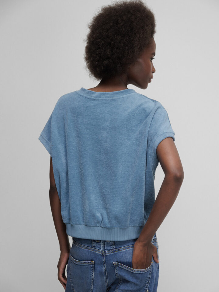 Kurzarm- Sweatshirt in Frotteeoptik von BY-BAR AMSTERDAM 706 BLUE STONE | TYLER SLUB TOP 26211035-BY