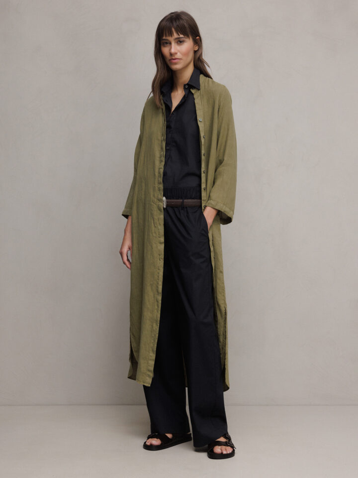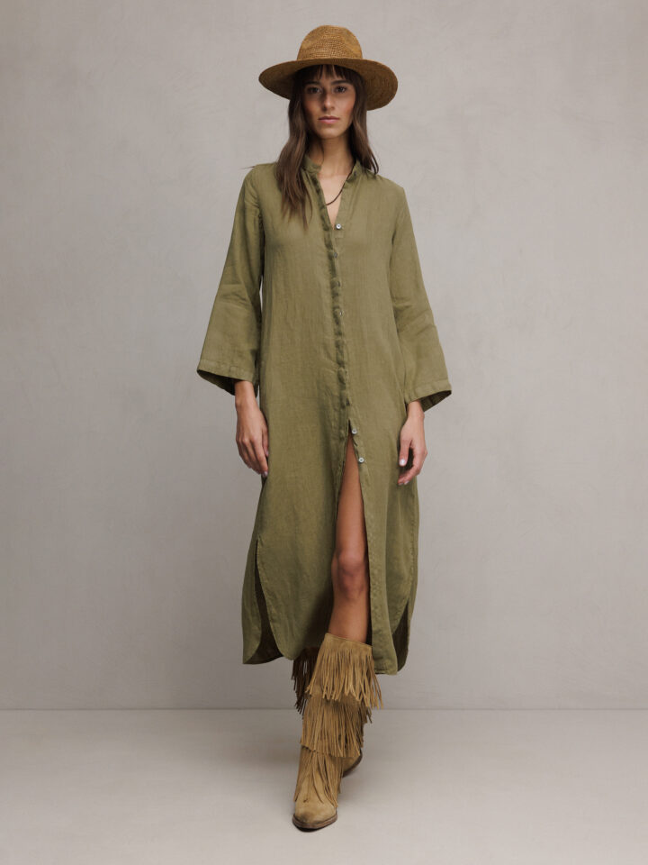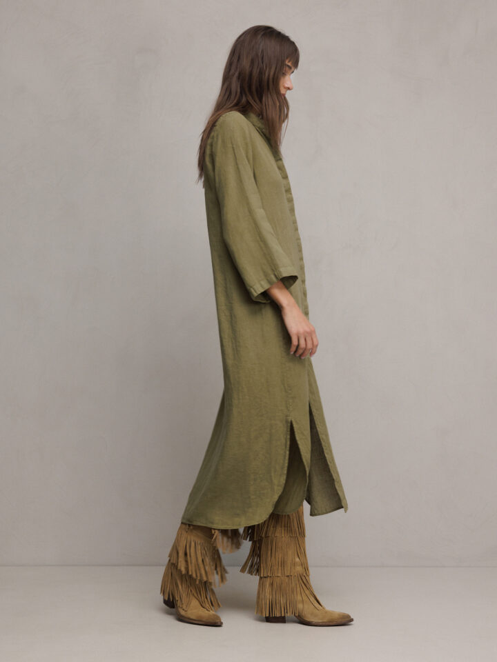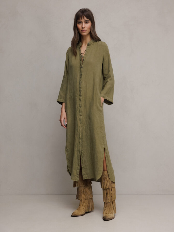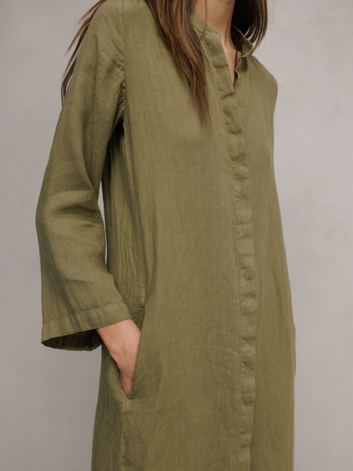 Midi- Blusenkleid aus Leinen von CALIBAN UU1 LT OLIV | P6W/K66
