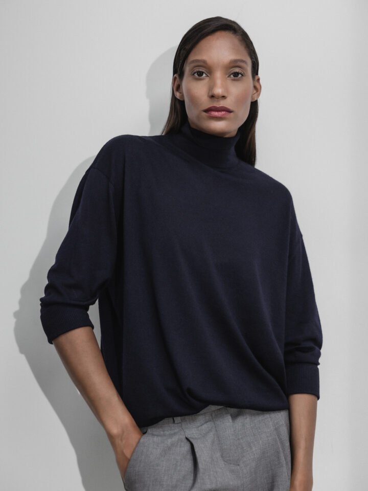 Neli ist 1,80m groß und trägt Größe 1. Der Pullover fällt größengetreu aus. Sie finden detaillierte Größenangaben & Produktmaße in unserem