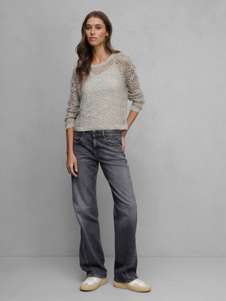 • Rippbündchen an Ärmeln und Saum