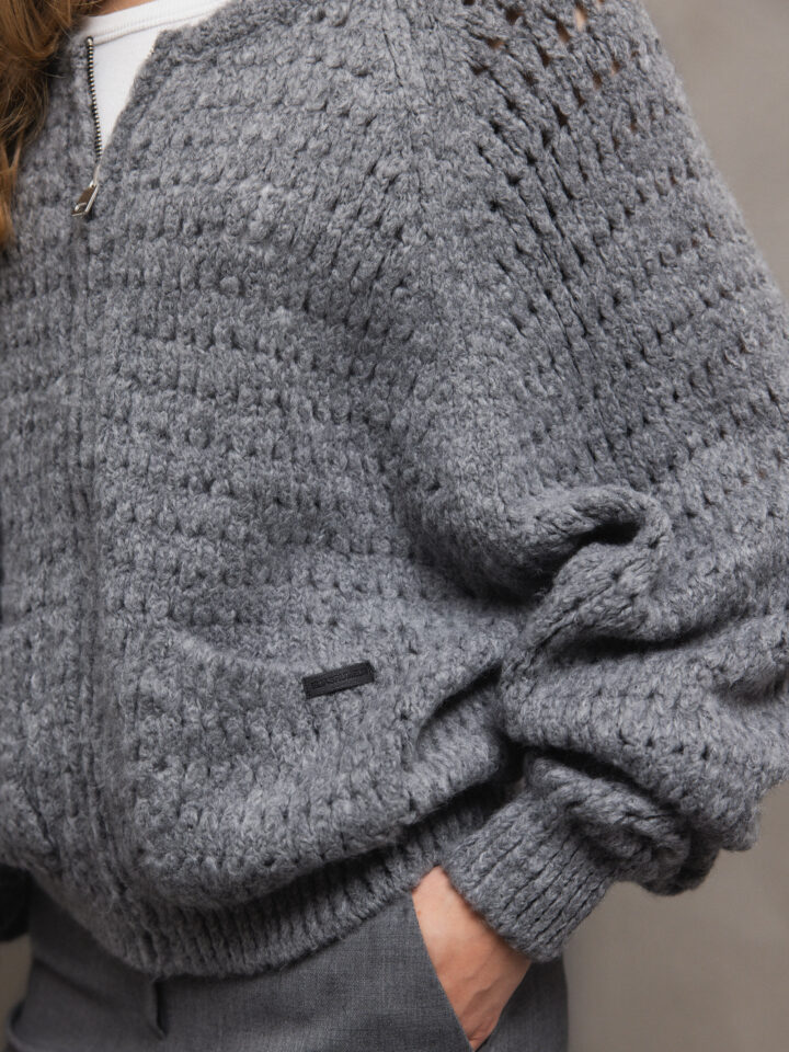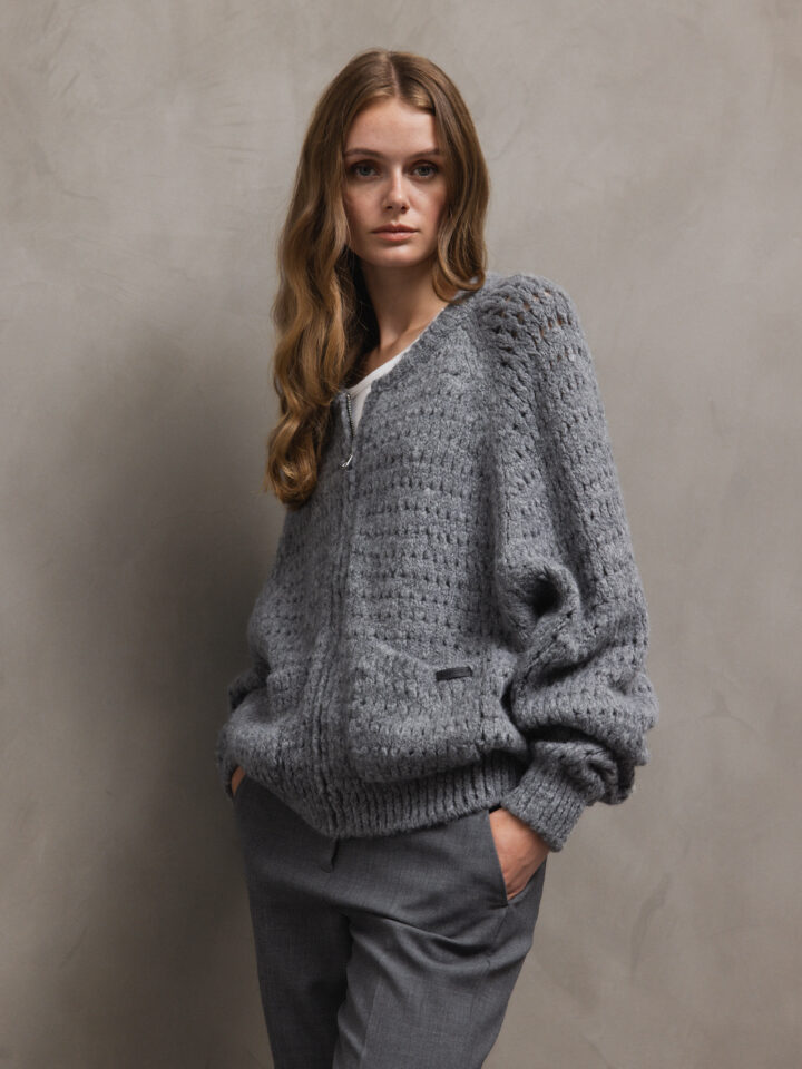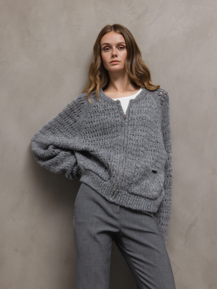 Strickjacke mit Lochstrick von ELIAS RUMELIS 0248 GREY MEL  |  EVIE 253/4757