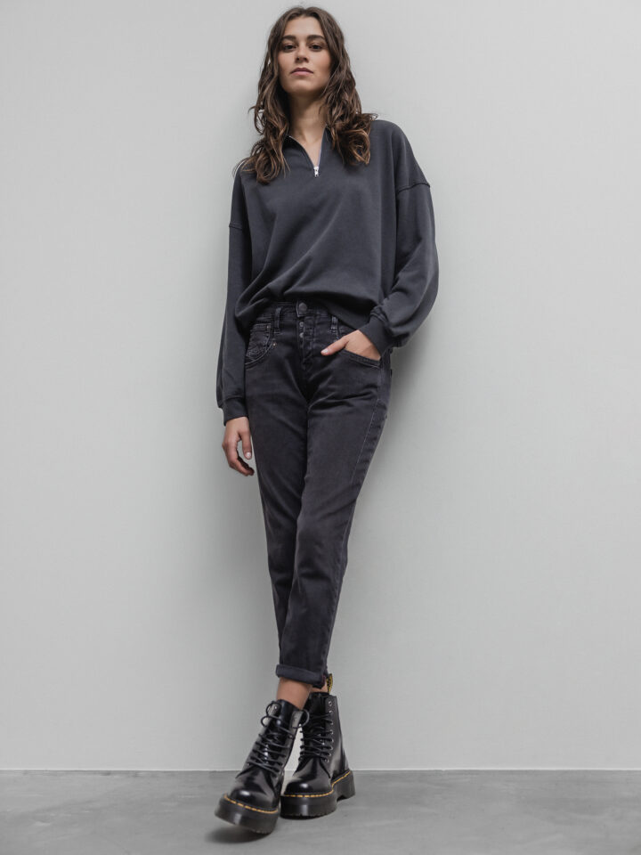 • Anna ist 1,80m groß und trägt Größe S. Das Sweatshirt fällt größengetreu aus. Sie finden detaillierte Größenangaben & Produktmaße in unserem