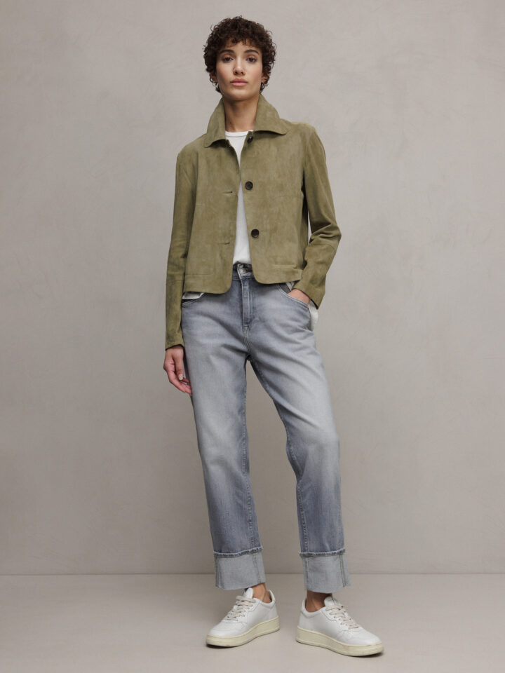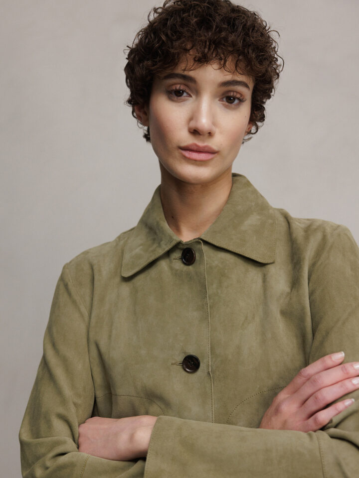 Velour- Lederjacke von ARMA HERBAL GREEN | EMY GOAT SUEDE